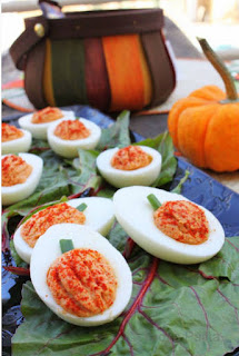 A tojásokat előkészítve a sárgáját kiszedve kavard krémesre a sütőtökkel, a mustárral, a majonézzel és az apróra vágott hagymával, valamint a fűszerekkel. A tölteléket kanalazd vissza a tojásba. A tökmagot száraz serpenyőben pirítsd meg, majd szórd a megtöltött tojásokra dísznek.